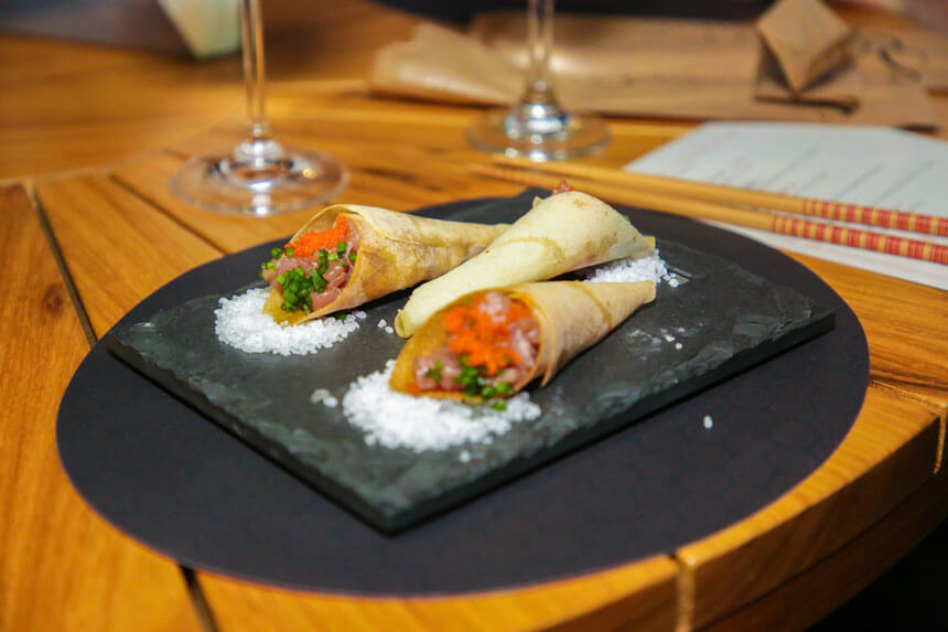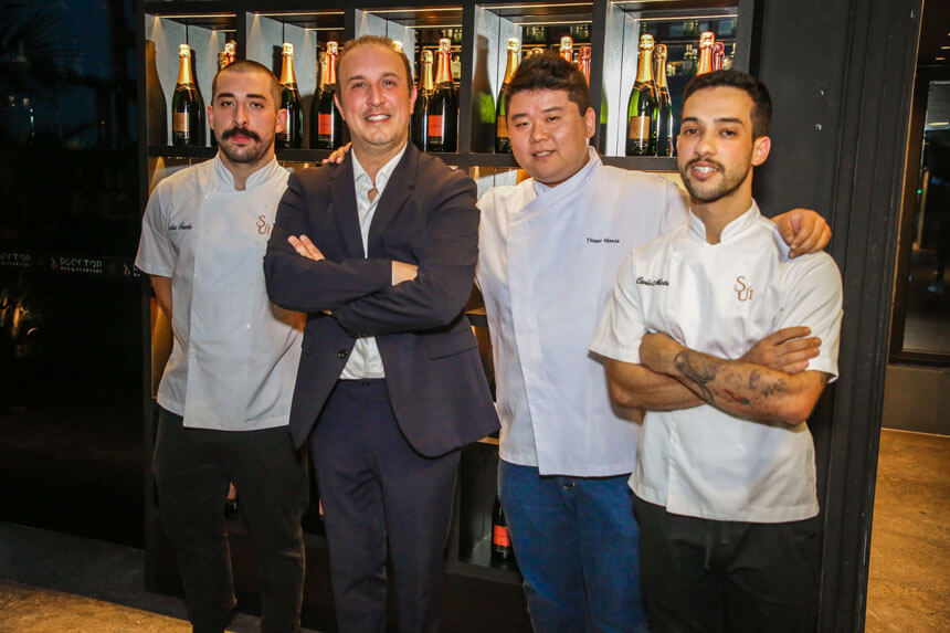 O renomado chef Thiago Maeda esteve em Porto Alegre na terça-feira (11) para um evento exclusivo no bairro Moinhos de Vento. Responsável pelo cardápio do Sui, o chef de São Paulo comandou a cozinha do rooftop do Hotel Laghetto Viverone durante um jantar para convidados. Imprensa, influenciadores e clientes foram recepcionados por Lúcio Martins, um dos sócios do restaurante, e conheceram em primeira mão os pratos do local por meio de um menu degustação harmonizado com vinhos. Os convidados elogiaram Maeda, que já passou por restaurantes como o D.O.M, de Alex Atala, por sua gastronomia carregada com uma pegada asiática.